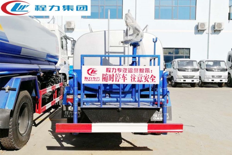 上裝配置:罐體有效容積6-10立方,罐體采用國標Q235碳鋼,罐體厚度4mm,自吸自排水泵,帶前沖裝置,后灑裝置,左右側(cè)噴裝置,尾部帶有安全操作平臺,帶消防接口,自流口,兩根輸水管,尾部綠化高炮,綠化高炮可調(diào)節(jié)直沖,大雨,中雨,毛毛雨霧,可以連續(xù)調(diào)節(jié),360度旋轉(zhuǎn);
