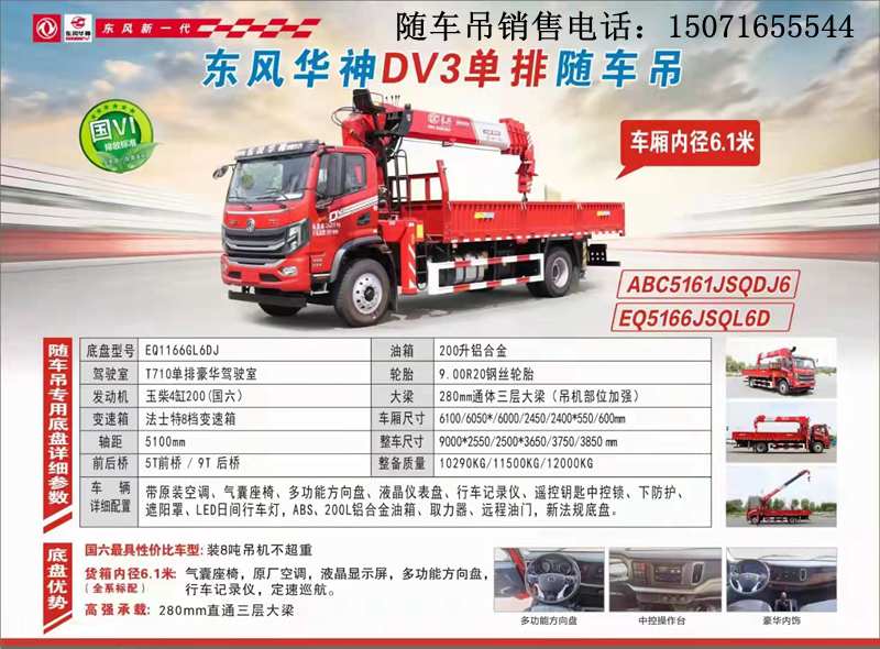 東風(fēng)華神DV3程力隨車8噸5節(jié)臂隨車吊基本配置: