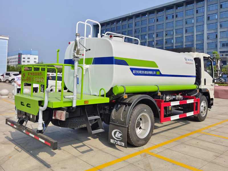 上裝配置:全新3.0版本涂裝,罐體容積9.7方,材質:罐體采用Q235,隔板厚度4mm,罐體碳鋼厚度4mm,封頭厚度4mm.大口徑直通球閥,可選裝鋁合金三通,加粗主管道(76)灑水功能、前沖、后灑、測噴、標配60/90大功率灑水泵,可自吸自排,帶消防接口。