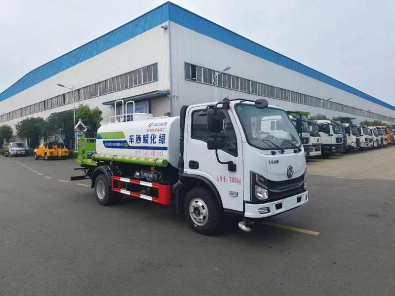 5噸灑水車,整車型號:CLW5070GPSD6,底盤配置:3308軸距,全柴136馬力發動機,萬里揚六檔變速箱,電動門窗,原廠空調,中控鎖,ABS,方向助力,斷氣剎,7.00R16鋼絲胎,前橋1.5T,后橋3.5T.上裝配置標配:罐體采用武鋼優質碳鋼Q235-B型材質,罐體厚度國標:4MM,專用功能:整車帶前沖(噴)、后灑、帶側噴(花灑)、帶后工作平臺、平臺上安裝綠化灑水高炮(炮噴射形狀可調節:直沖、大雨、中雨、毛毛雨、霧狀、可連續調節,360度旋轉),配消防接口,自流閥,濾網,配備大功率專用灑水泵,泵可自吸自排,垂直吸程≥7米,灑水寬度≥14米,高炮射程≥28米,后平臺帶30米柴油全自動霧炮。